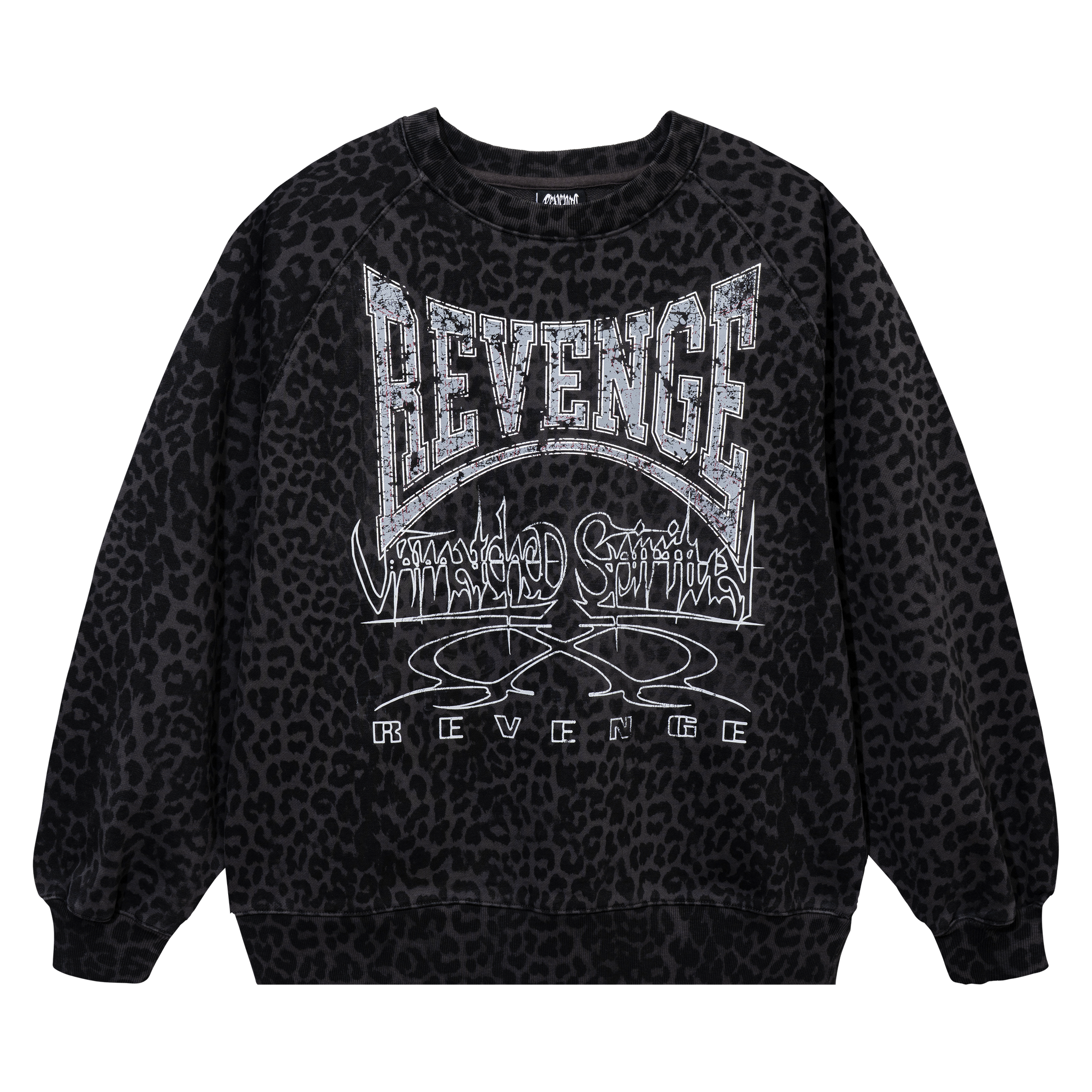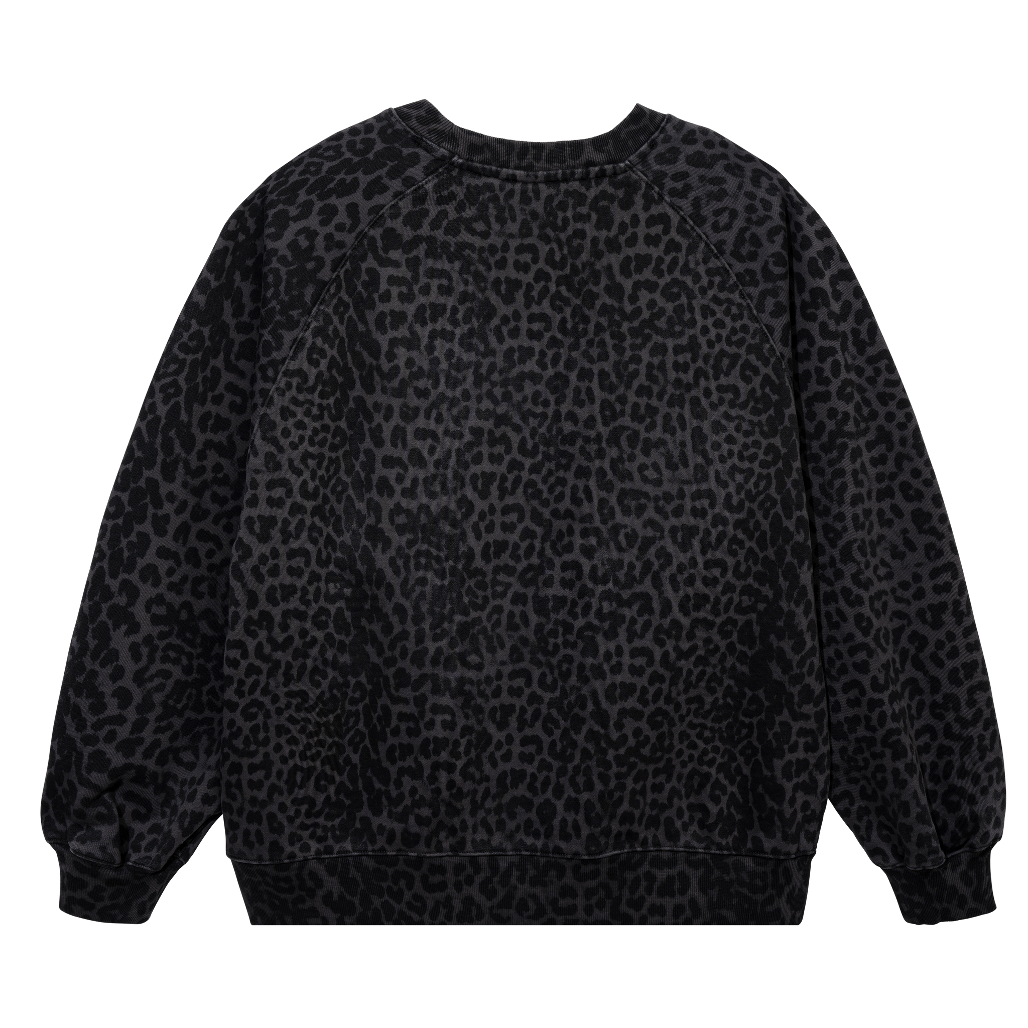 LEOPARD PATTERN RAGLAN CREWNECK BLACK