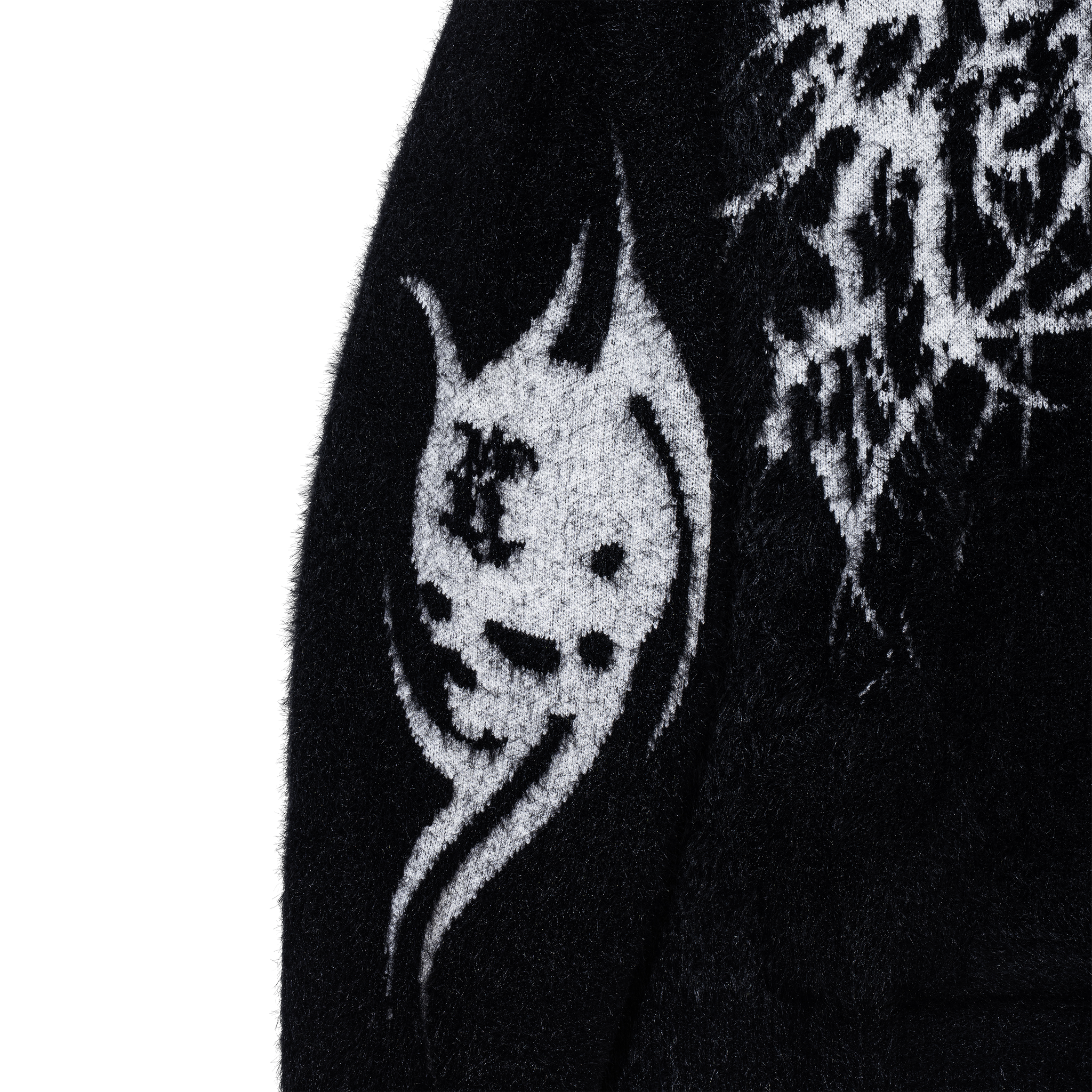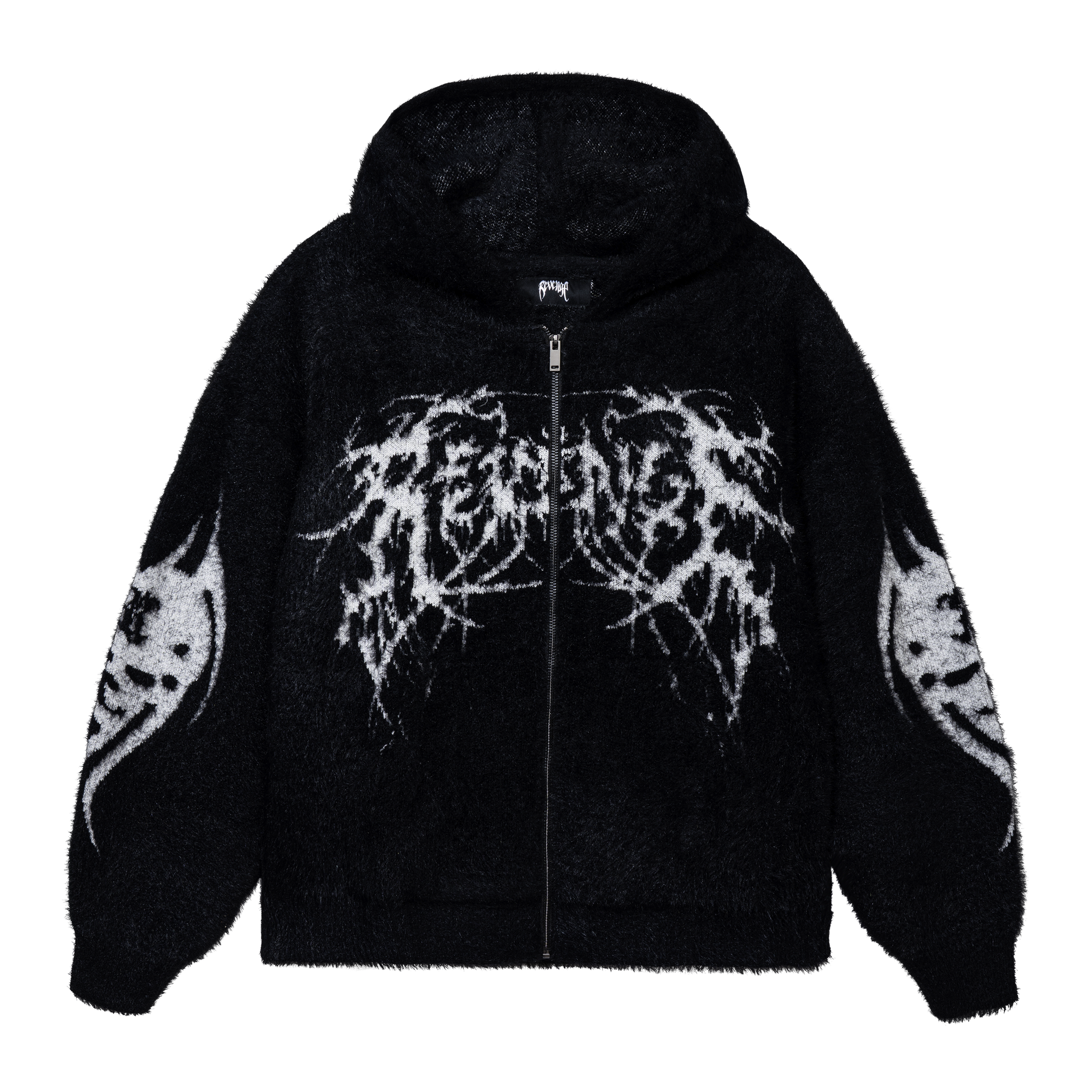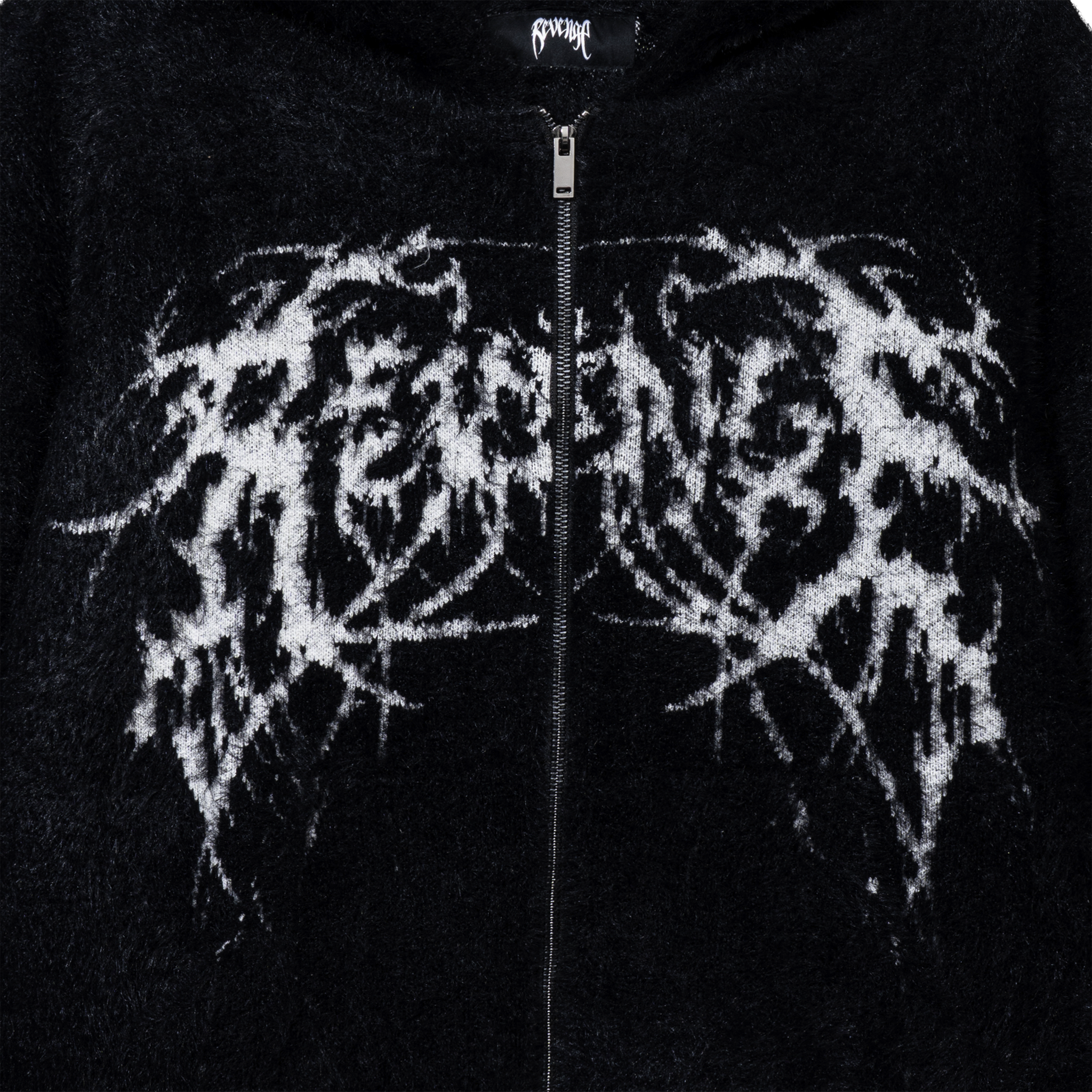 METAL LOGO VEGAN MINK KNIT ZIP BLACK