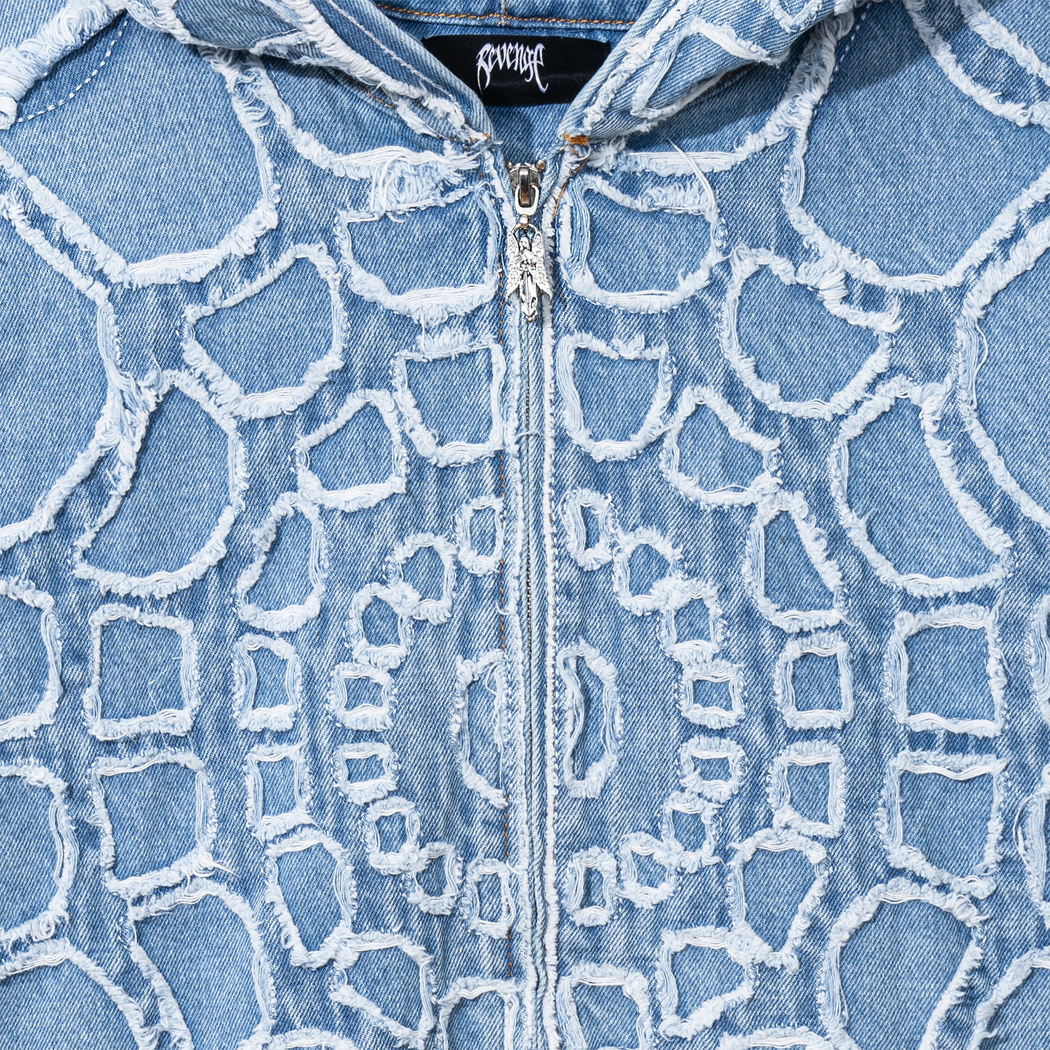 SPIDER WEB DENIM JACKET BLEACHED INDIGO