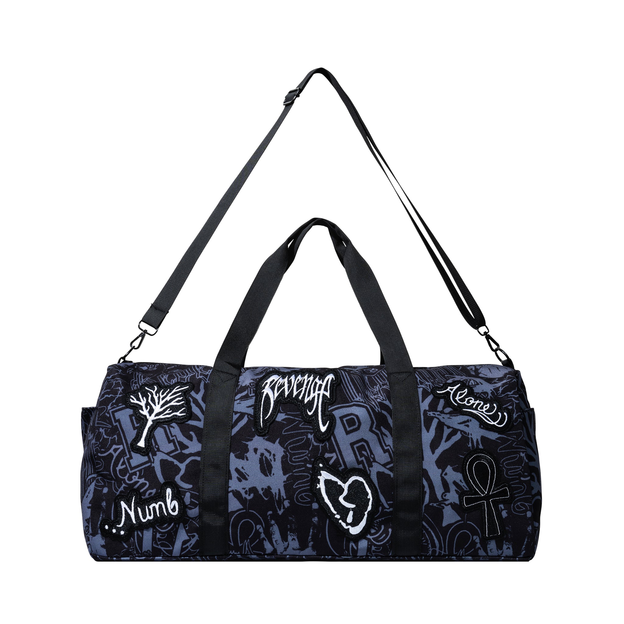 X COLLAGE PATCHES CANVAS DUFFEL BLACK/WHITE