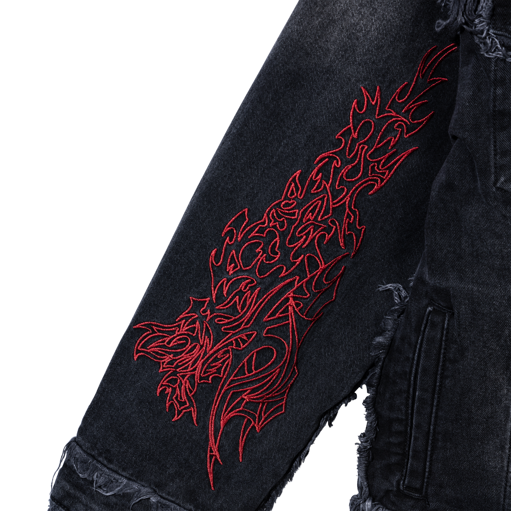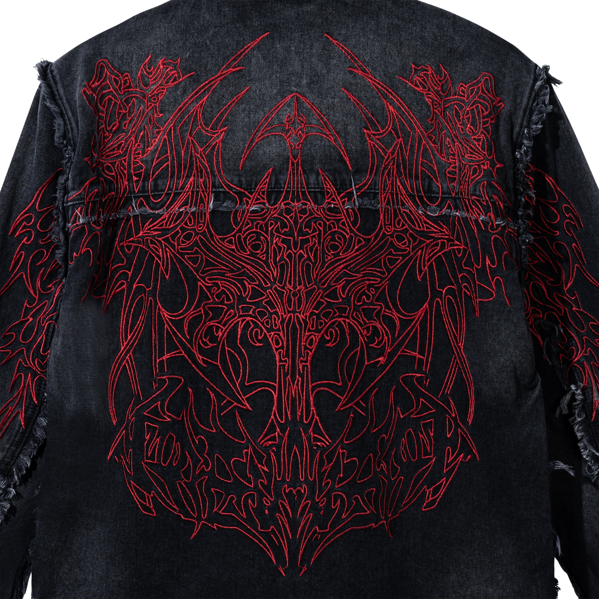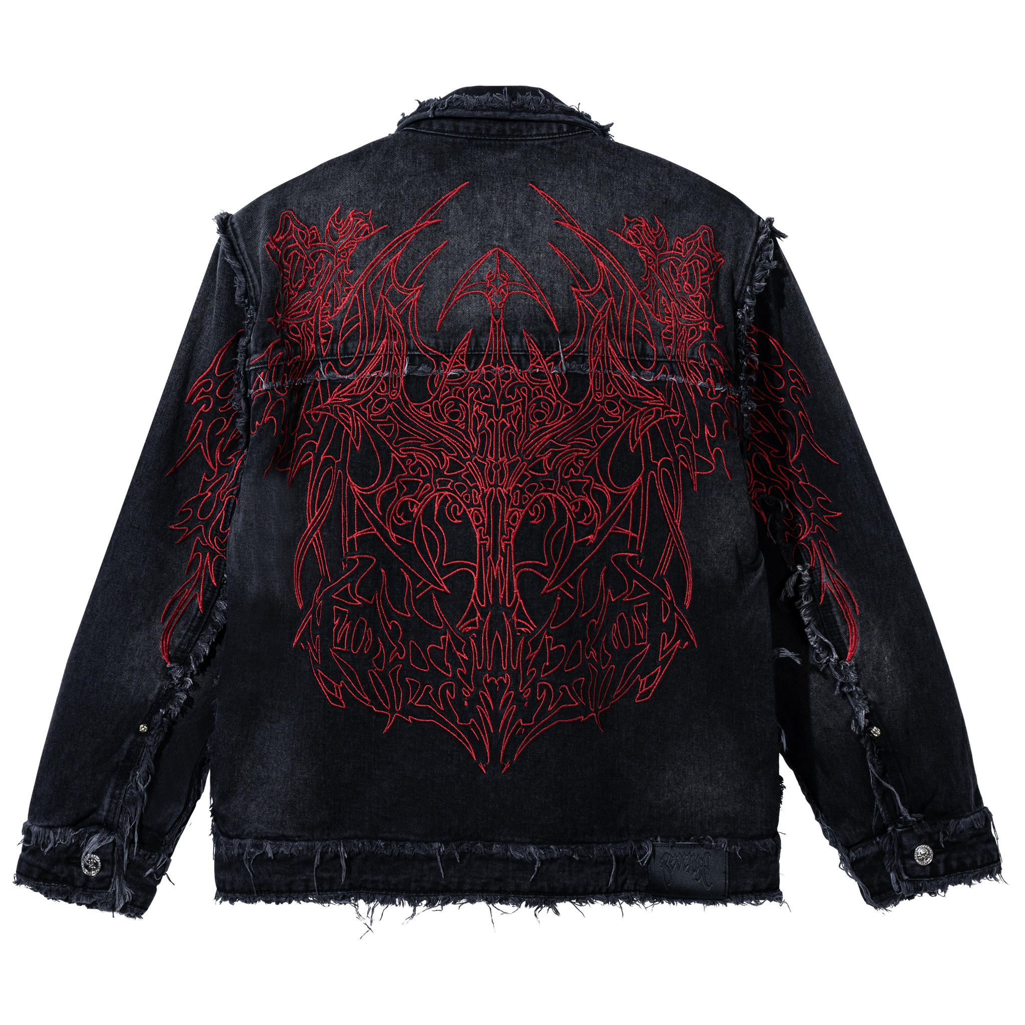 TRIBAL CROSS DENIM JACKET BLACK/RED