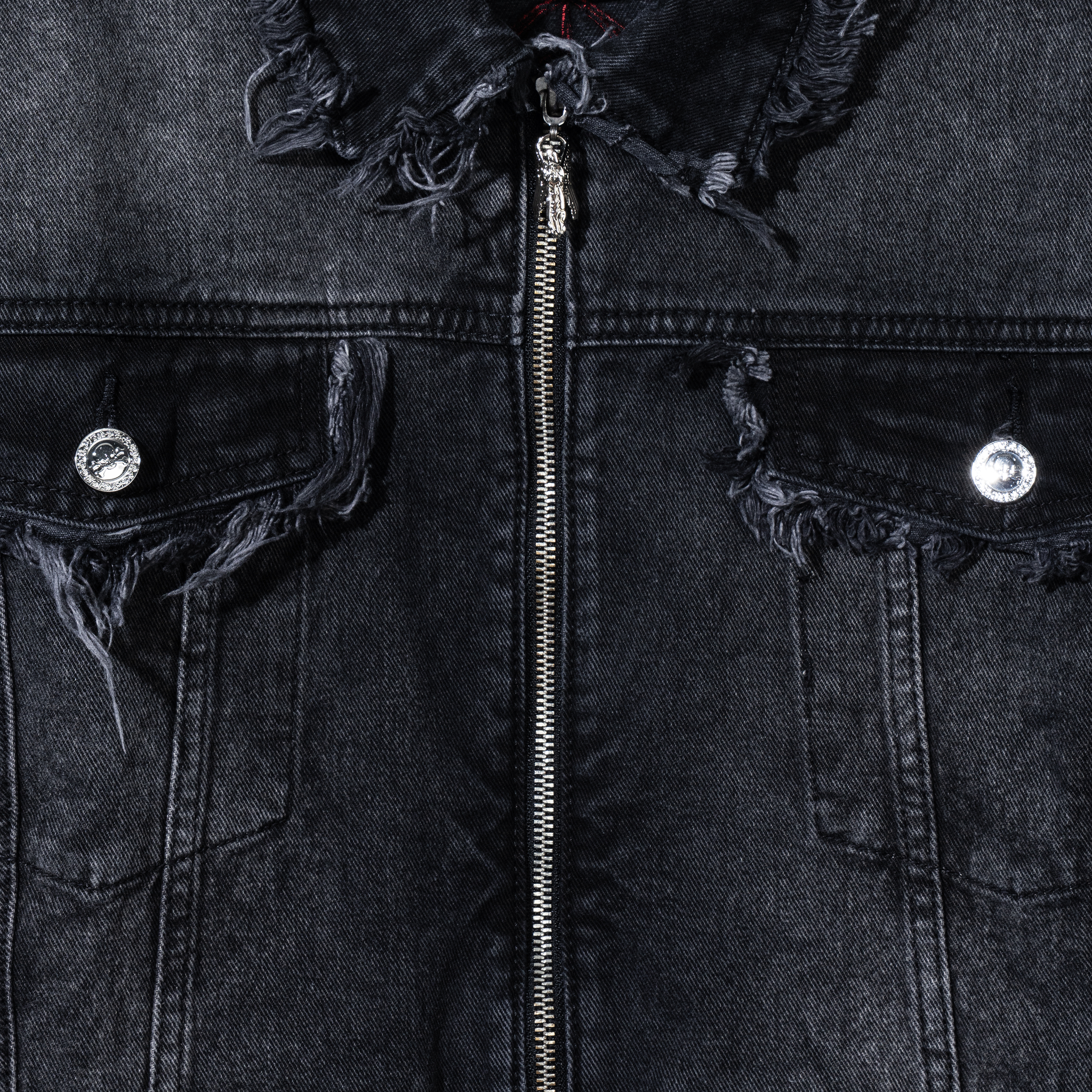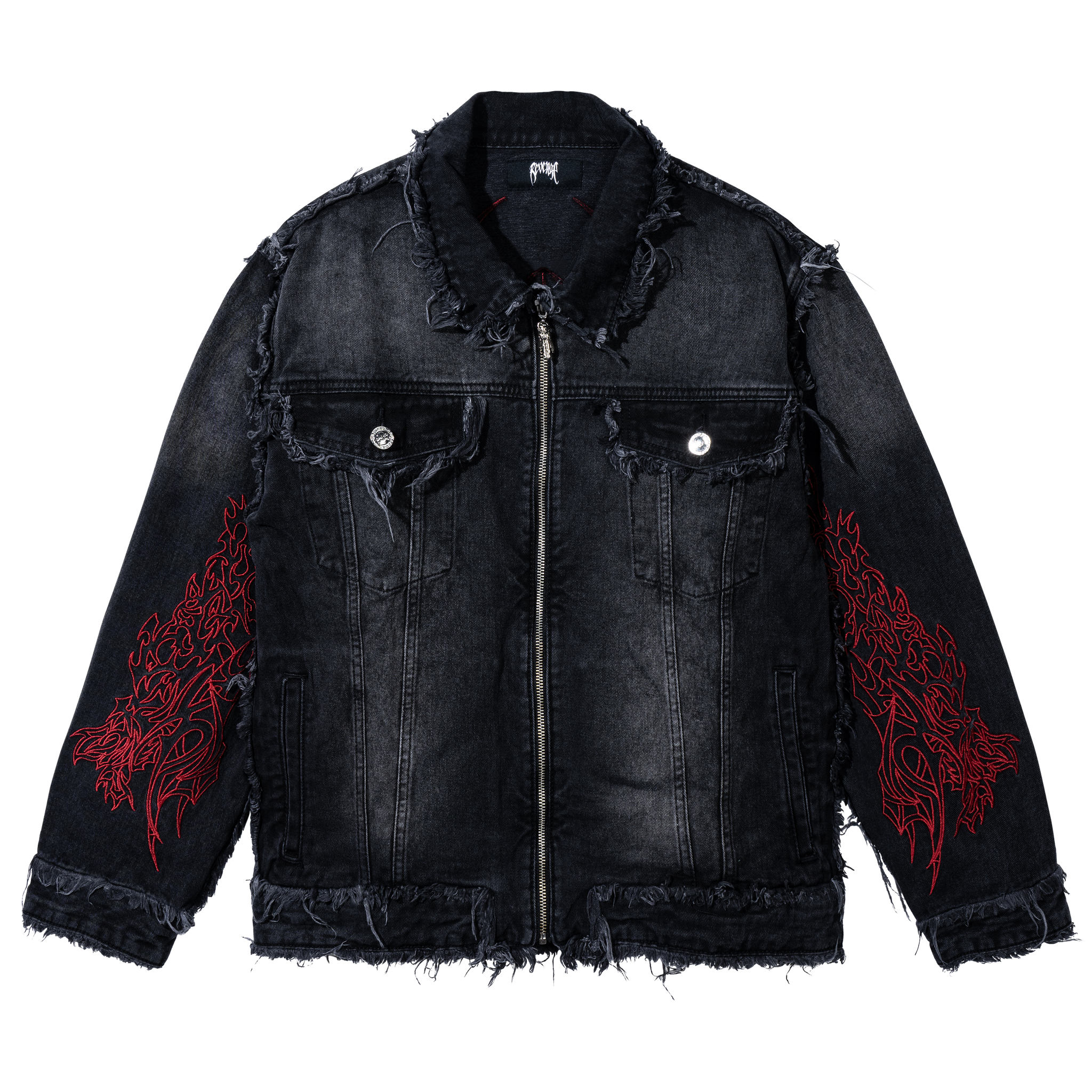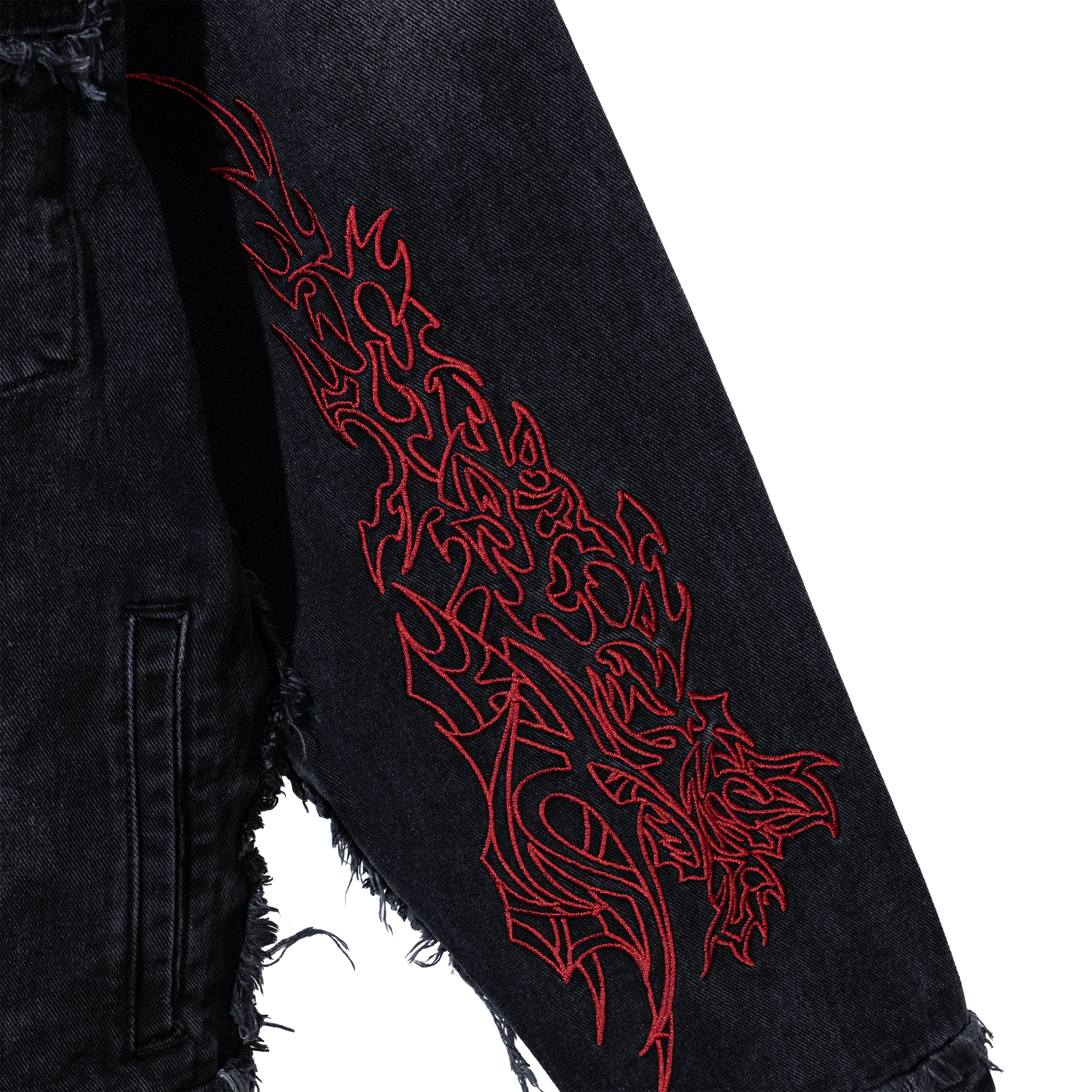 TRIBAL CROSS DENIM JACKET BLACK/RED